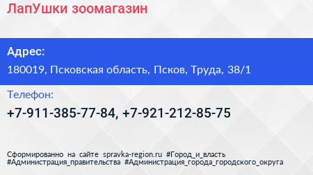 ЛапУшки, зоомагазин по адресу 180019, Псковская область, Псков, Труда, 38/1 в дальнейшем Организация, размещена в следующих категориях: