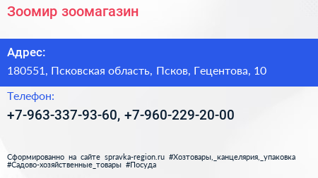 Зоомир, зоомагазин по адресу 180551, Псковская область, Псков, Гецентова, 10 в дальнейшем Организация, размещена в следующих категориях: