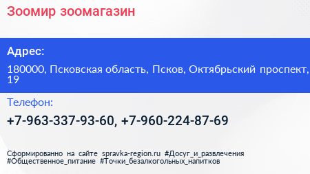 Зоомир, зоомагазин по адресу 180000, Псковская область, Псков, Октябрьский проспект, 19 в дальнейшем Организация, размещена в следующих категориях: