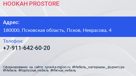 HOOKAH PROSTORE по адресу 180000, Псковская область, Псков, Некрасова, 4 в дальнейшем Организация, размещена в следующих категориях: