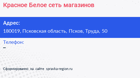 Красное & Белое, сеть магазинов по адресу 180019, Псковская область, Псков, Труда, 50 в дальнейшем Организация, размещена в следующих категориях: