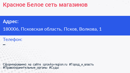 Красное & Белое, сеть магазинов по адресу 180006, Псковская область, Псков, Волкова, 1 в дальнейшем Организация, размещена в следующих категориях:
