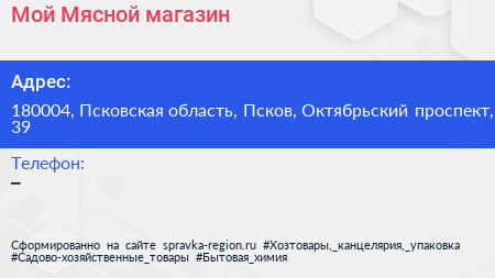 Мой Мясной, магазин по адресу 180004, Псковская область, Псков, Октябрьский проспект, 39 в дальнейшем Организация, размещена в следующих категориях: