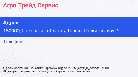 Агро Трейд Сервис по адресу 180000, Псковская область, Псков, Пожиговская, 5 в дальнейшем Организация, размещена в следующих категориях: