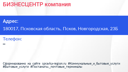 БИЗНЕСЦЕНТР, компания по адресу 180017, Псковская область, Псков, Новгородская, 23Б в дальнейшем Организация, размещена в следующих категориях: