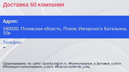 Доставка 60, компания по адресу 180020, Псковская область, Псков, Ижорского Батальона, 10в в дальнейшем Организация, размещена в следующих категориях: