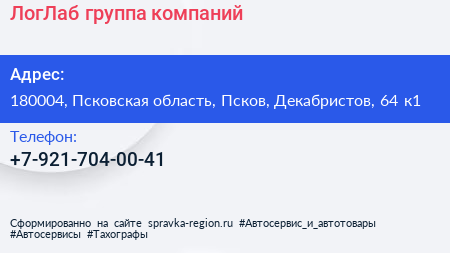 ЛогЛаб, группа компаний по адресу 180004, Псковская область, Псков, Декабристов, 64 к1 в дальнейшем Организация, размещена в следующих категориях: