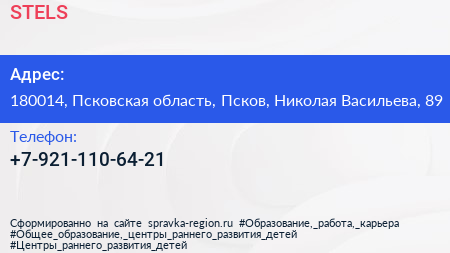 STELS по адресу 180014, Псковская область, Псков, Николая Васильева, 89 в дальнейшем Организация, размещена в следующих категориях: