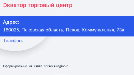Экватор, торговый центр по адресу 180025, Псковская область, Псков, Коммунальная, 73а в дальнейшем Организация, размещена в следующих категориях: