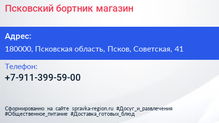 Псковский бортник, магазин по адресу 180000, Псковская область, Псков, Советская, 41 в дальнейшем Организация, размещена в следующих категориях: