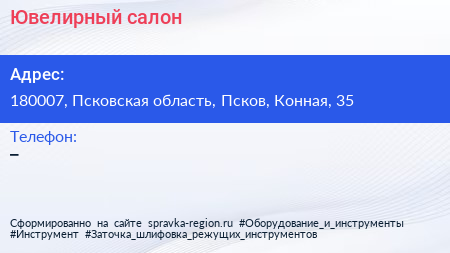 Ювелирный салон по адресу 180007, Псковская область, Псков, Конная, 35 в дальнейшем Организация, размещена в следующих категориях:
