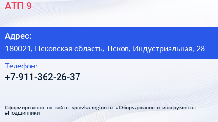АТП №9 по адресу 180021, Псковская область, Псков, Индустриальная, 28 в дальнейшем Организация, размещена в следующих категориях: