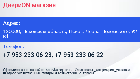 ДвериON, магазин по адресу 180000, Псковская область, Псков, Леона Поземского, 92 к4 в дальнейшем Организация, размещена в следующих категориях: