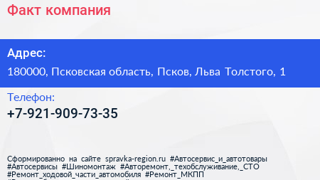 Факт, компания по адресу 180000, Псковская область, Псков, Льва Толстого, 1 в дальнейшем Организация, размещена в следующих категориях: