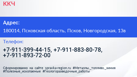 ККЧ по адресу 180014, Псковская область, Псков, Новгородская, 13в в дальнейшем Организация, размещена в следующих категориях: