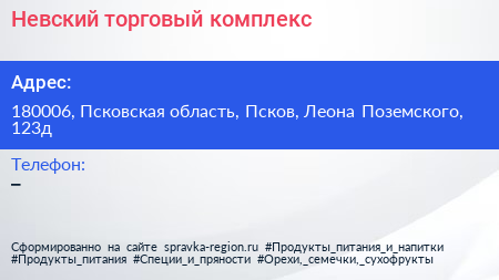 Невский, торговый комплекс по адресу 180006, Псковская область, Псков, Леона Поземского, 123д в дальнейшем Организация, размещена в следующих категориях: