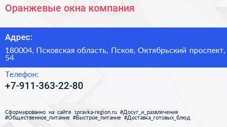 Оранжевые окна, компания по адресу 180004, Псковская область, Псков, Октябрьский проспект, 54 в дальнейшем Организация, размещена в следующих категориях: