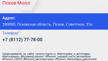 Псков-Молл по адресу 180000, Псковская область, Псков, Советская, 15а в дальнейшем Организация, размещена в следующих категориях: