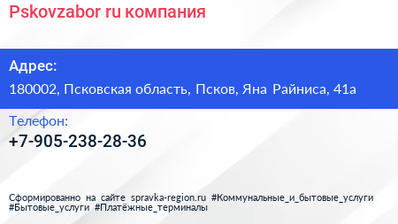 Pskovzabor.ru, компания по адресу 180002, Псковская область, Псков, Яна Райниса, 41а в дальнейшем Организация, размещена в следующих категориях: