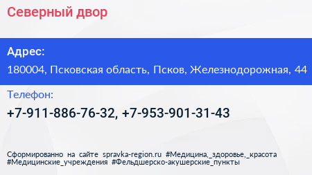 Северный двор по адресу 180004, Псковская область, Псков, Железнодорожная, 44 в дальнейшем Организация, размещена в следующих категориях: