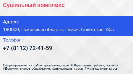 Сушильный комплекс по адресу 180000, Псковская область, Псков, Советская, 60а в дальнейшем Организация, размещена в следующих категориях:
