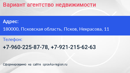 Вариант, агентство недвижимости по адресу 180000, Псковская область, Псков, Некрасова, 11 в дальнейшем Организация, размещена в следующих категориях: