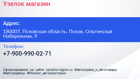 Узелок, магазин по адресу 180007, Псковская область, Псков, Ольгинская Набережная, 9 в дальнейшем Организация, размещена в следующих категориях: