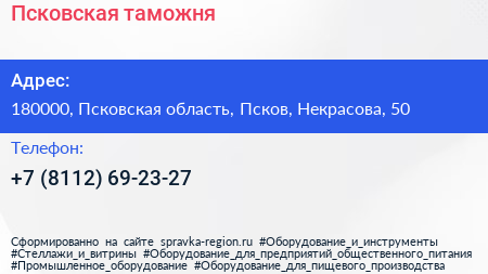 Псковская таможня по адресу 180000, Псковская область, Псков, Некрасова, 50 в дальнейшем Организация, размещена в следующих категориях: