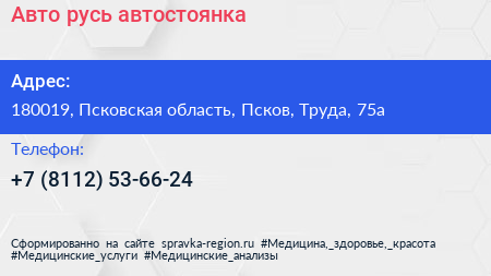 Авто-русь, автостоянка по адресу 180019, Псковская область, Псков, Труда, 75а в дальнейшем Организация, размещена в следующих категориях: