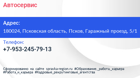 Автосервис по адресу 180024, Псковская область, Псков, Гаражный проезд, 5/1 в дальнейшем Организация, размещена в следующих категориях: