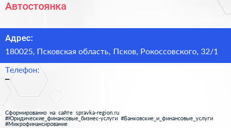 Автостоянка по адресу 180025, Псковская область, Псков, Рокоссовского, 32/1 в дальнейшем Организация, размещена в следующих категориях: