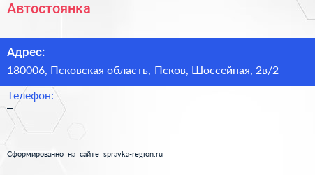 Автостоянка по адресу 180006, Псковская область, Псков, Шоссейная, 2в/2 в дальнейшем Организация, размещена в следующих категориях: