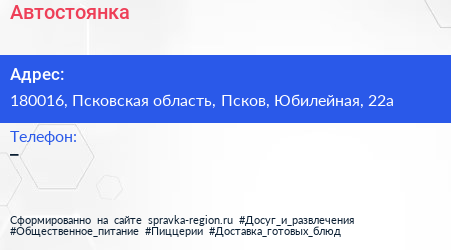Автостоянка по адресу 180016, Псковская область, Псков, Юбилейная, 22а в дальнейшем Организация, размещена в следующих категориях: