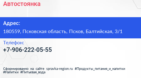 Автостоянка по адресу 180559, Псковская область, Псков, Балтийская, 3/1 в дальнейшем Организация, размещена в следующих категориях: