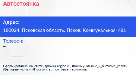 Автостоянка по адресу 180024, Псковская область, Псков, Коммунальная, 48а в дальнейшем Организация, размещена в следующих категориях: