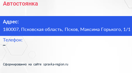 Автостоянка по адресу 180007, Псковская область, Псков, Максима Горького, 1/1 в дальнейшем Организация, размещена в следующих категориях: