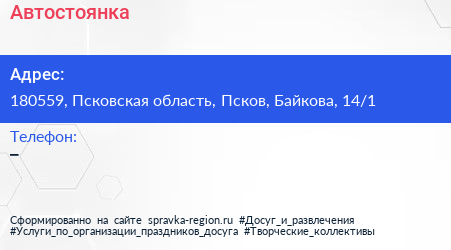 Автостоянка по адресу 180559, Псковская область, Псков, Байкова, 14/1 в дальнейшем Организация, размещена в следующих категориях: