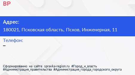 BP по адресу 180021, Псковская область, Псков, Инженерная, 11 в дальнейшем Организация, размещена в следующих категориях: