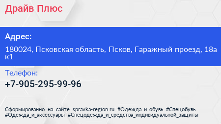 Драйв Плюс по адресу 180024, Псковская область, Псков, Гаражный проезд, 18а к1 в дальнейшем Организация, размещена в следующих категориях: