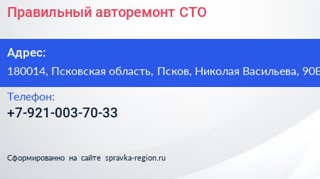 Правильный авторемонт, СТО по адресу 180014, Псковская область, Псков, Николая Васильева, 90Б в дальнейшем Организация, размещена в следующих категориях: