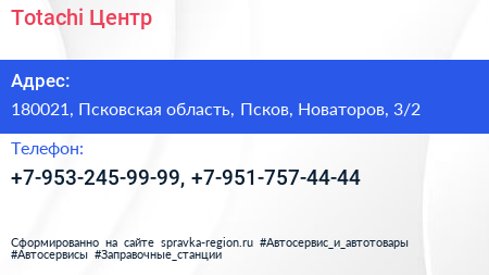 Totachi Центр по адресу 180021, Псковская область, Псков, Новаторов, 3/2 в дальнейшем Организация, размещена в следующих категориях:
