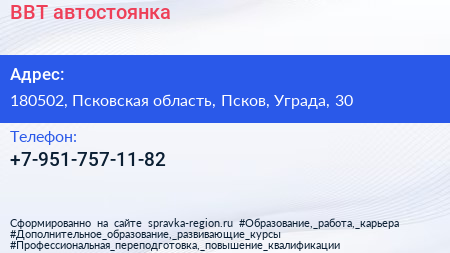 ВВТ, автостоянка по адресу 180502, Псковская область, Псков, Уграда, 30 в дальнейшем Организация, размещена в следующих категориях:
