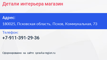 Детали интерьера, магазин по адресу 180025, Псковская область, Псков, Коммунальная, 73 в дальнейшем Организация, размещена в следующих категориях: