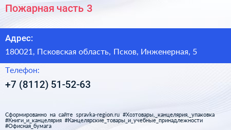 Пожарная часть №3 по адресу 180021, Псковская область, Псков, Инженерная, 5 в дальнейшем Организация, размещена в следующих категориях: