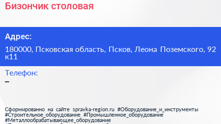 Бизончик, столовая по адресу 180000, Псковская область, Псков, Леона Поземского, 92 к11 в дальнейшем Организация, размещена в следующих категориях: