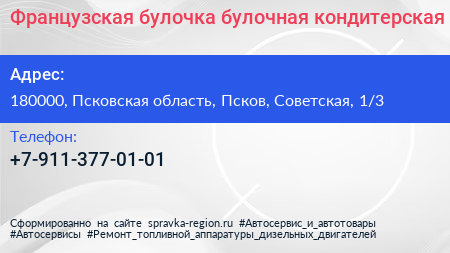 Французская булочка, булочная-кондитерская по адресу 180000, Псковская область, Псков, Советская, 1/3 в дальнейшем Организация, размещена в следующих категориях: