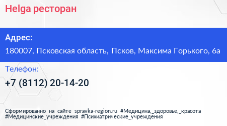 Helga, ресторан по адресу 180007, Псковская область, Псков, Максима Горького, 6а в дальнейшем Организация, размещена в следующих категориях: