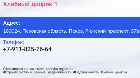 Хлебный дворик №1 по адресу 180024, Псковская область, Псков, Рижский проспект, 57в в дальнейшем Организация, размещена в следующих категориях: