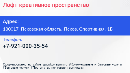 Лофт, креативное пространство по адресу 180017, Псковская область, Псков, Спортивная, 1Б в дальнейшем Организация, размещена в следующих категориях:
