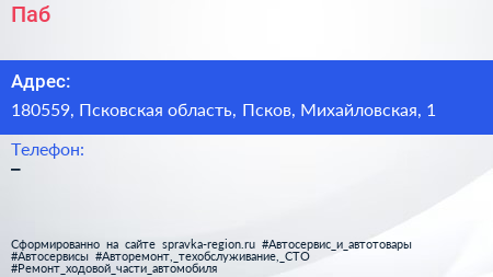 Паб по адресу 180559, Псковская область, Псков, Михайловская, 1 в дальнейшем Организация, размещена в следующих категориях: